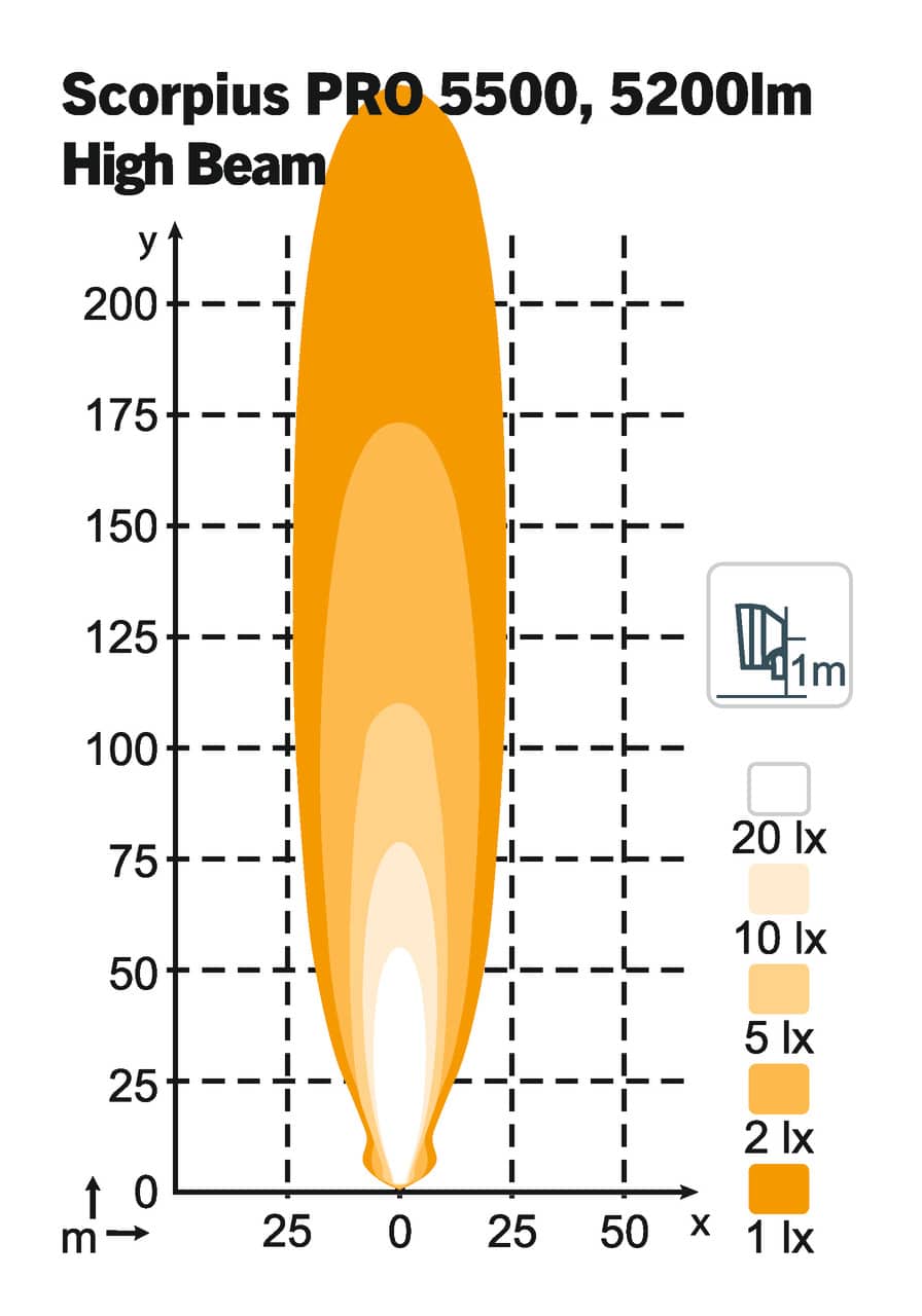 Die Scorpius PRO 445 bietet verbesserte mechanische Eigenschaften, ist leichter und verfügt über ein neues Linsenmaterial mit außergewöhnlicher Wärmetoleranz. Sie verfügt über eine asymmetrische Wide Flood-Funktion und eine Lichtleistung von 4400 Lumen.